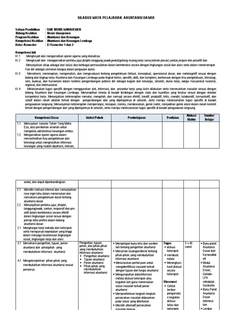 Silabus praktikum akuntansi perusahaan jasa, dagang, dan manufaktur kerja kelas xii smk kurikulum 2013 revisi 2017 merupakan acuan dalam penyusunan rencana . Kompetensi dasar indikator pencapaian kompetensi materi. Silabus praktikum akuntansi kelas xi smkn 1 tunjung teja 1. Siklus akuntansi perusahaan jasa 3. Sekolah menengah kejuruan mata pelajaran :