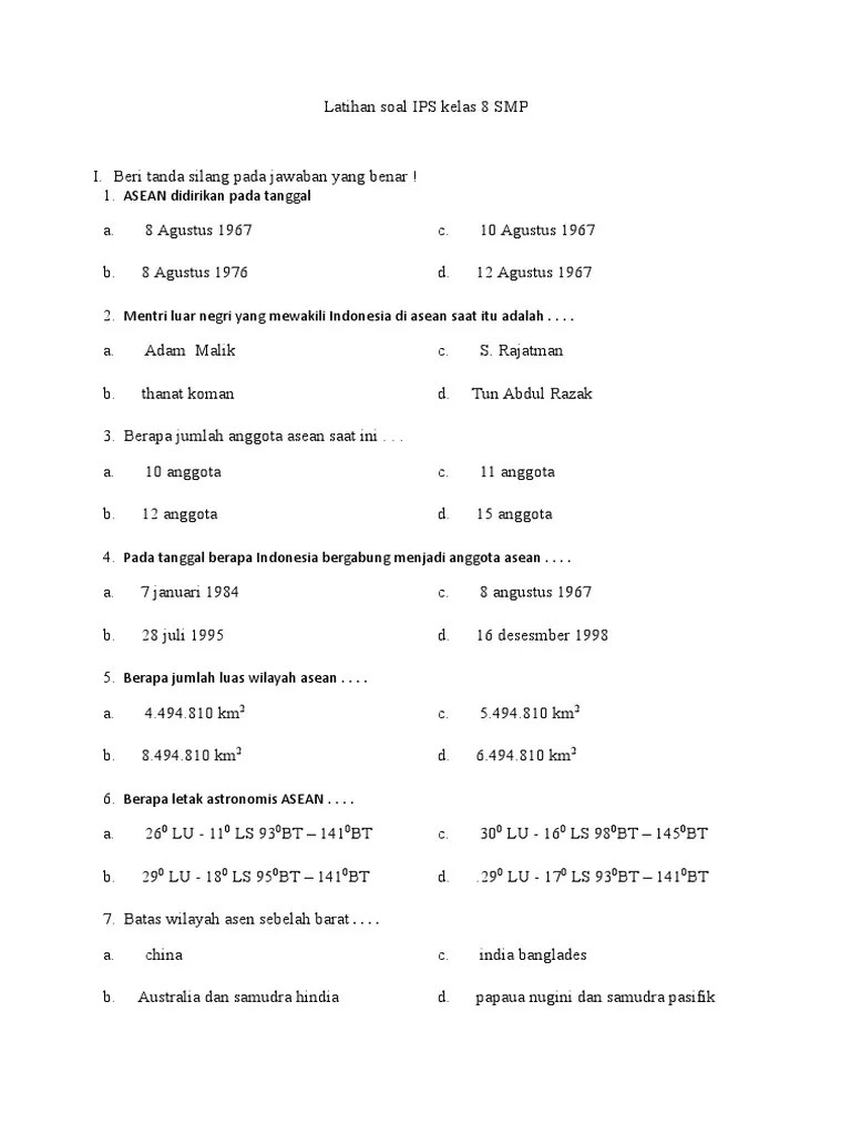 Soal Ulangan Harian Ips Kelas 8 Tentang Asean - Pembahasan Soal Ips Kelas 8 Bab 1 Asean Semester 1 Kurikulum 2013 Disertai Kunci Jawaban Ringtimes Bali / 30 25 pilihan ganda 5 essay paper size f4 (21.59 x 33) cm font :